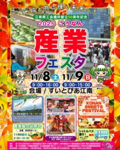 「こうなん産業フェスタ2025」が、今年もすいとぴあ江南で開催されます。