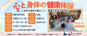 「心と身体の健康体操」は、無理なく身体を動かしながら、本来持っている機能を引き出し、健康で元気に過ごせる身体づくりを目指す教室です。