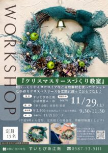 すいとぴあ江南では、自然の恵みを活かした「クリスマスリース作り教室」を開催します。
