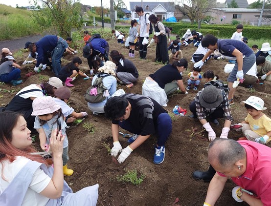 10月25日(土)の午前中、すいとぴあ江南の畑で「親子さつまいも掘り体験」を実施しました!