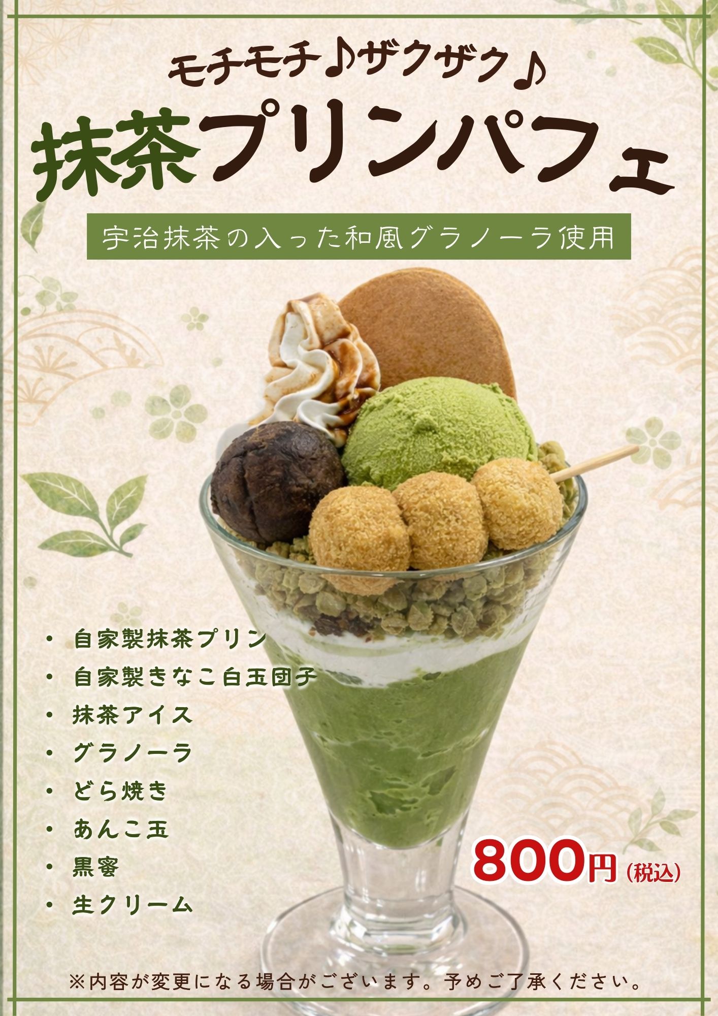 3月から、抹茶パフェがレギュラーメニューに仲間入りしました!