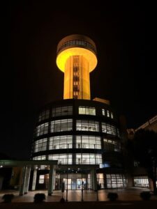 すいとぴあ江南でも、この趣旨に賛同し、9月15日(日)から9月21日(土)までの一週間、展望タワーをシンボルカラーであるオレンジ色にライトアップしています。